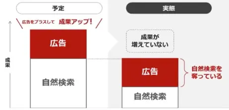 - 実態: 自然検索で獲得できたはずの流入を、広告が奪っているだけ。