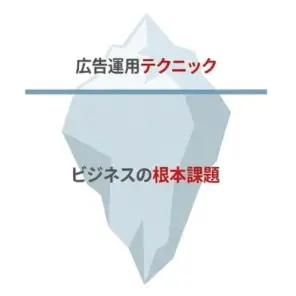 図に表すと、広告運用テクニックは海面に見えている「氷山の一角」に過ぎません。その下には、より巨大な「ビジネスの根本課題」が隠れています。