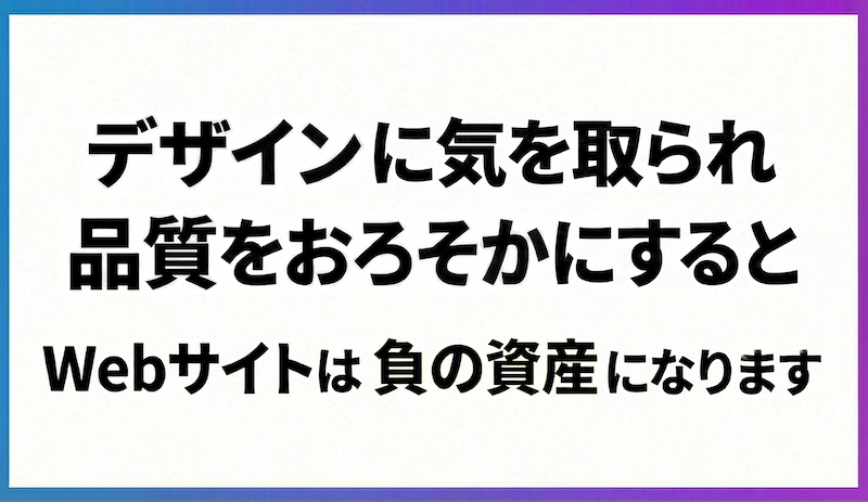 なぜなら、会社の顔であるWebサイトの品質を大きく落としてしまう危険性を孕んでいるからです。