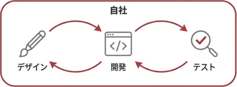 円滑な連携と責任の所在の明確化。高機能・高品質を目指すなら、自社内で全ての工程を管理できる体制が理想です。